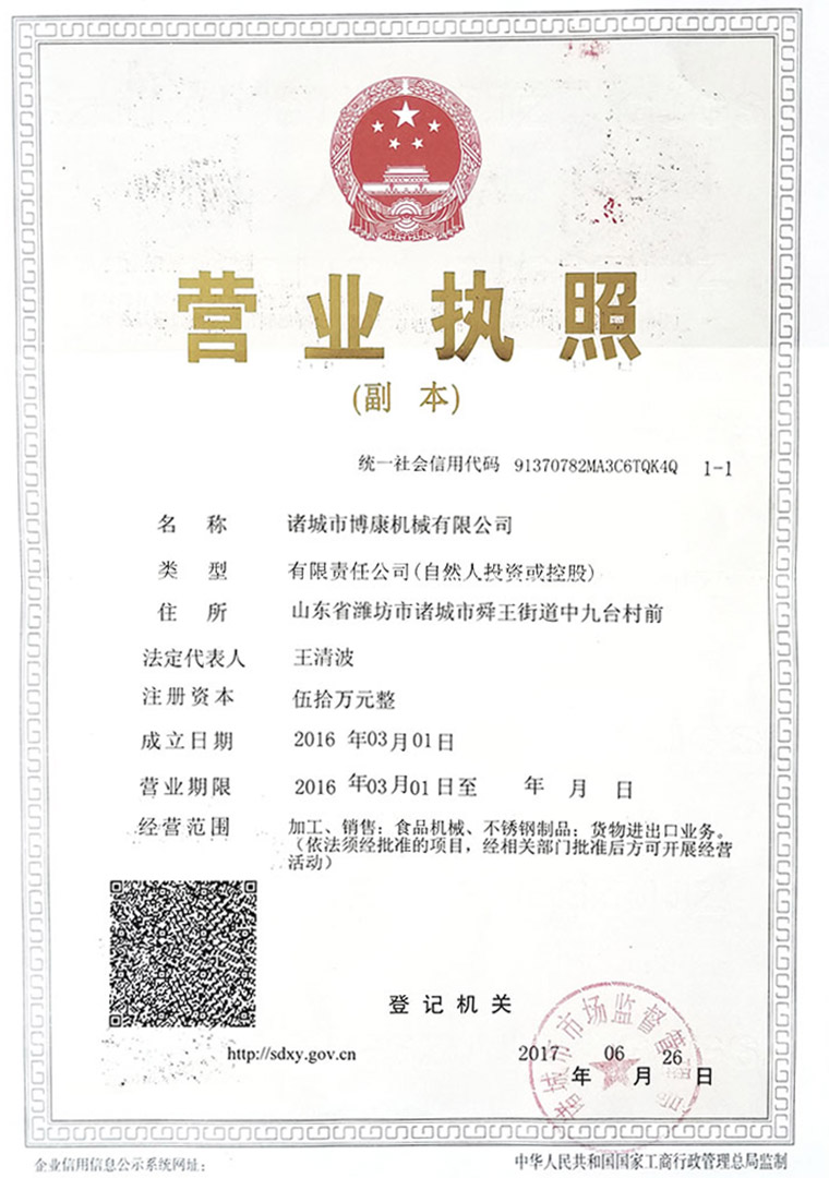 Zhucheng Bokang machinery Co., Ltd. is specialized in R&D and manufacturing of industry equipment for food, and provides customers with solutions of complete sets of equipment. For over decade years, the food equipment we produced has been exported to many countries, such as the United States, the United Kingdom, France, Australia, Indonesia, Saudi Arabia, Chile, Malaysia, Vietnam, North Korea and the Philippines.